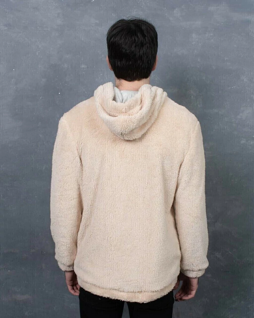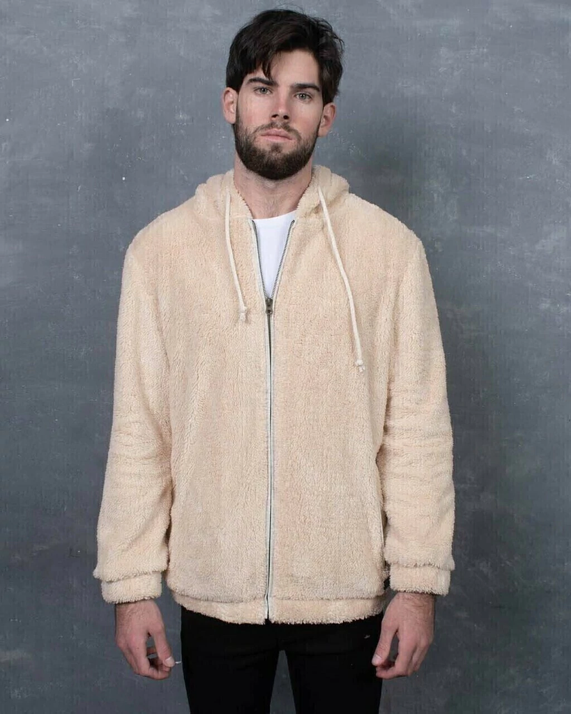 Campera de corderito sintetico forrada en su interior con jersey. Tiene cierre y capucha.