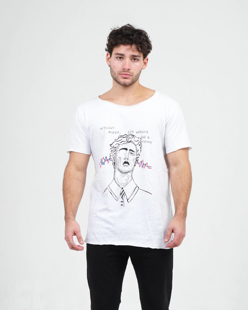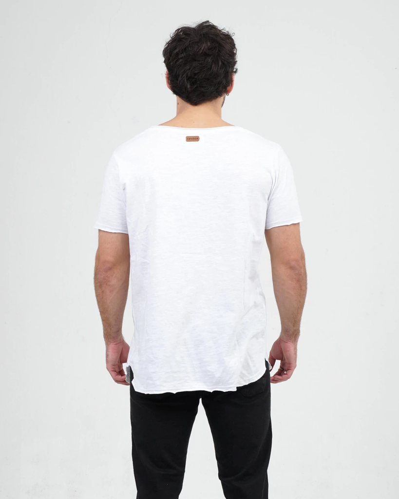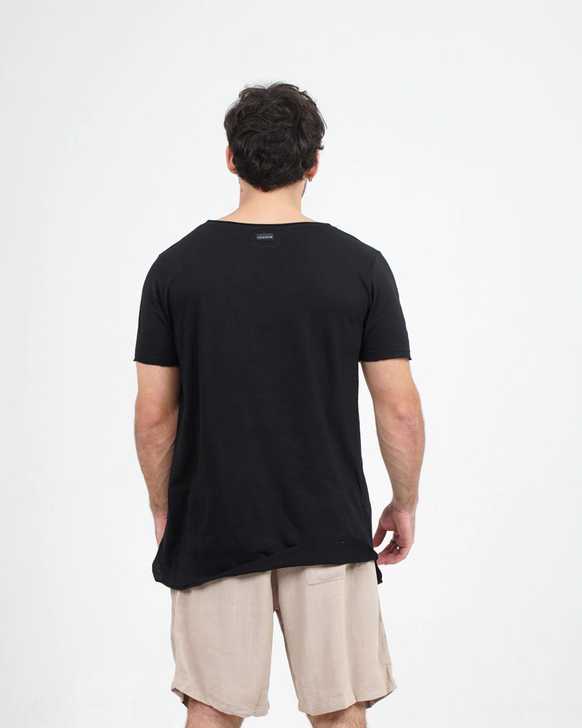 Remera confeccionada en viscosa / poliéster. composición 50% algodón 50% viscosa. Sus terminaciones son al corte y cuello amplio. es un modelo suelto y holgado.