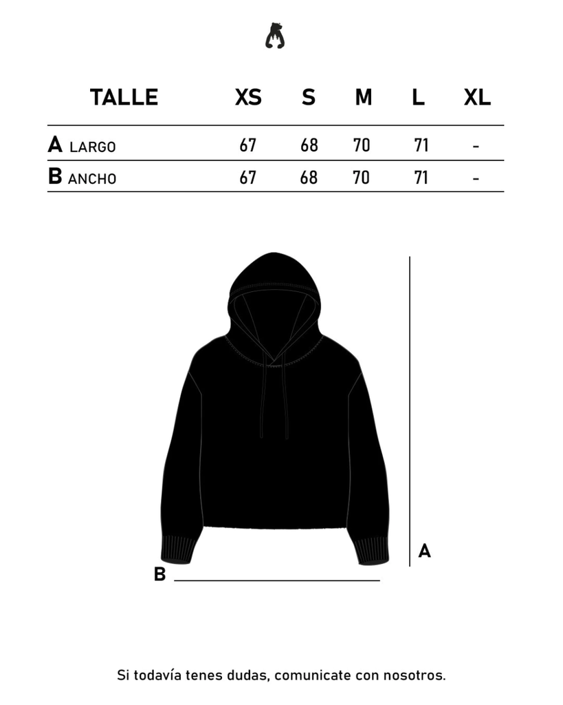 Buzo boxy fit con capucha, confeccionado en friza, 100% poliéster. Tiene estampa en frente y dorso.