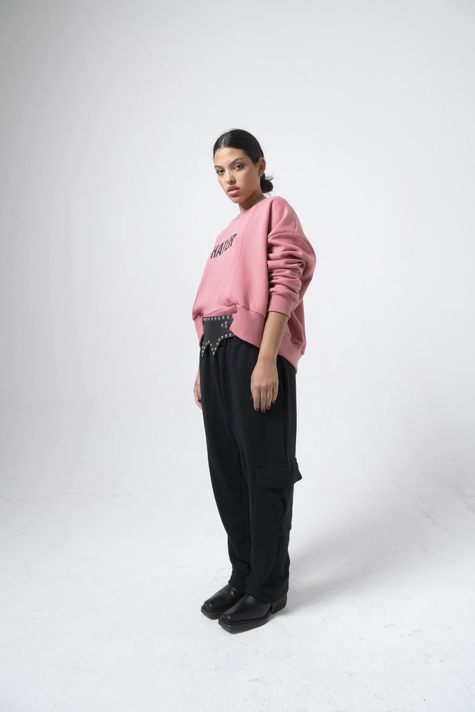 Buzo de Friza 100 % algodón, corte asimetrico en el centro con puños y cuello con ribb.