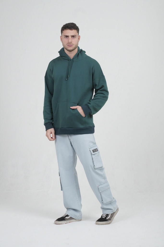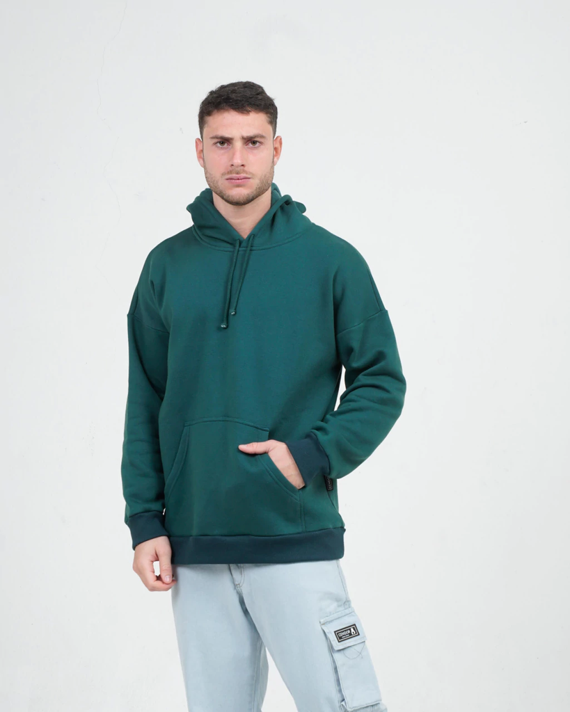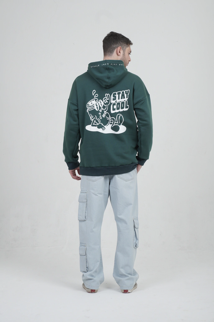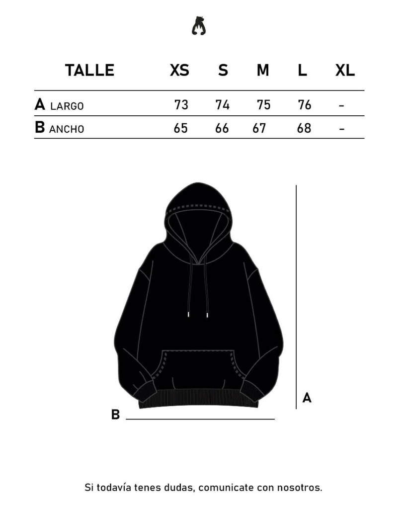 Buzo con bolsillo canguro y capucha, confeccionado en friza, 100% poliester. Tiene estampa en frente y dorso.