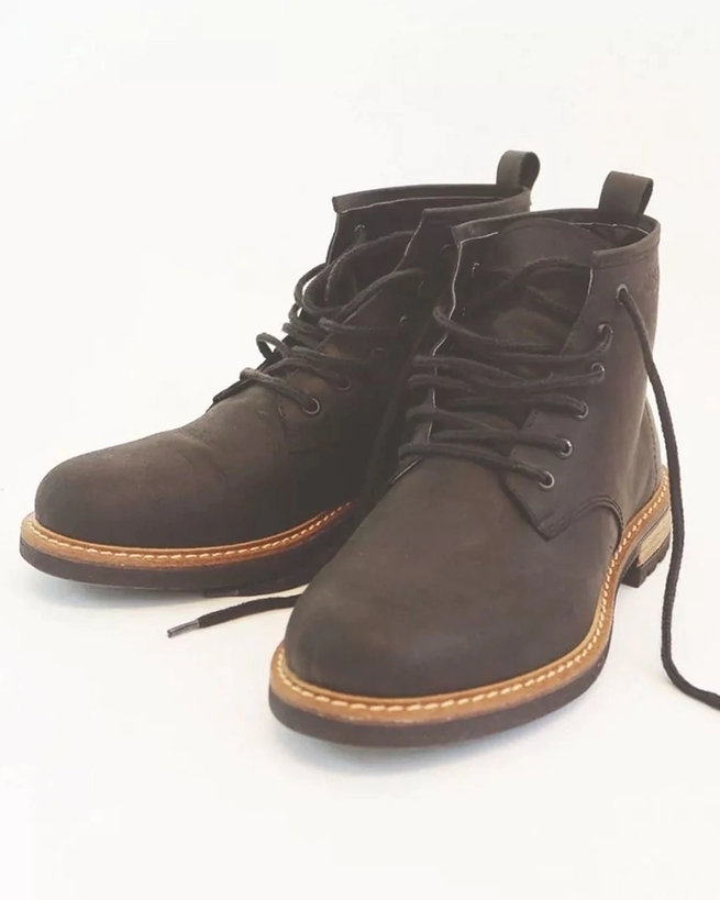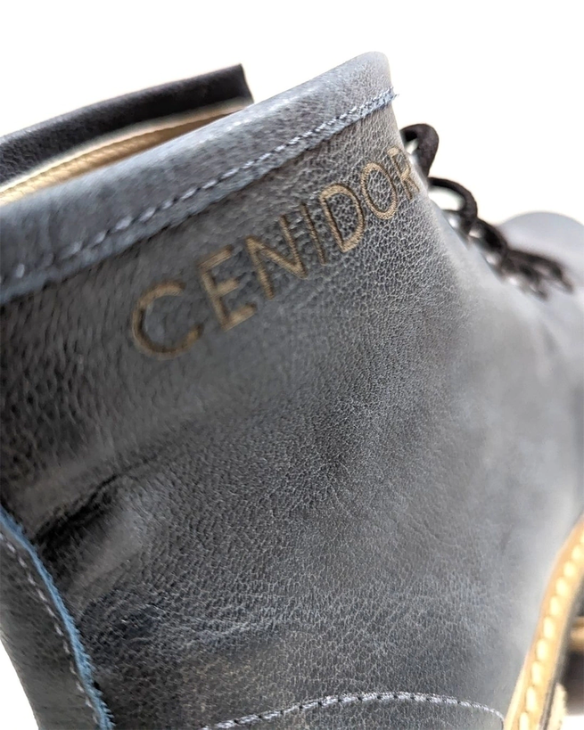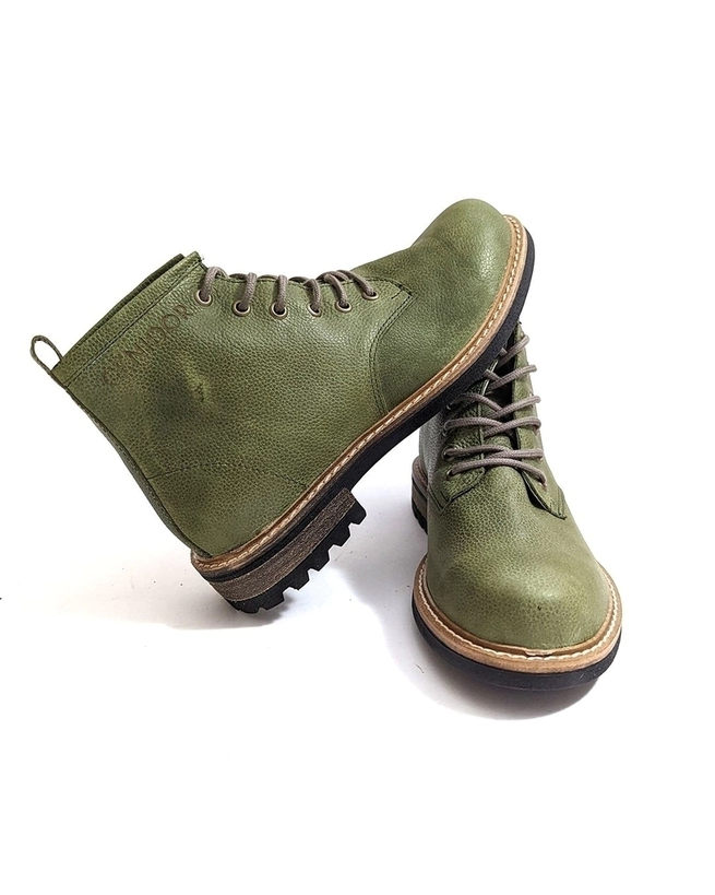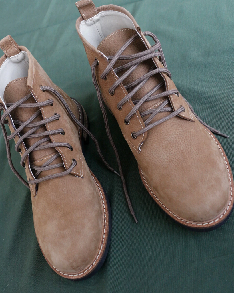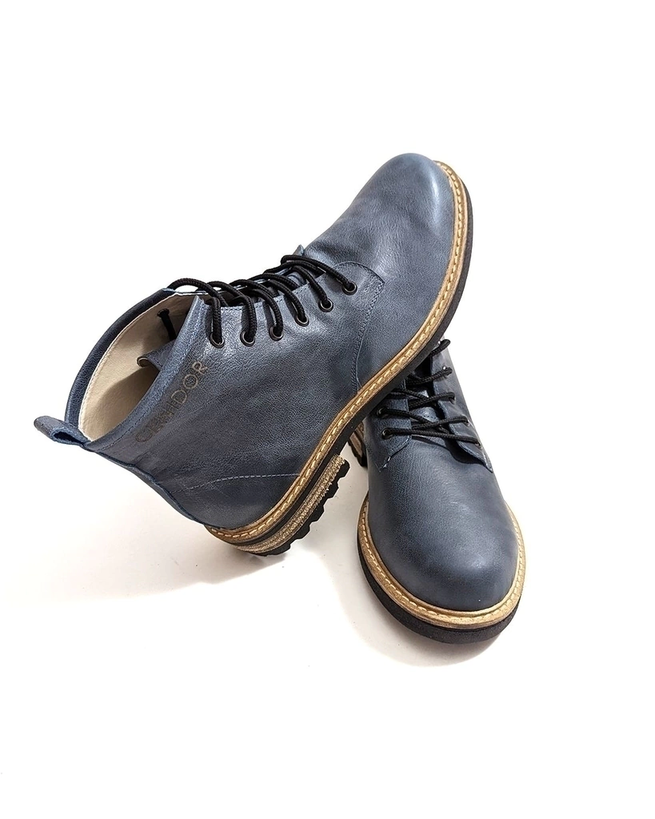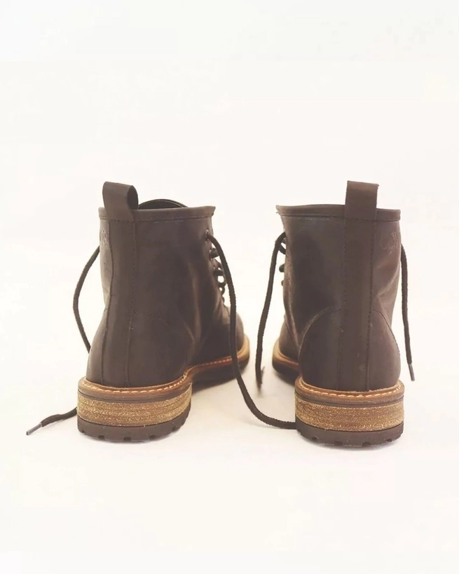 Tiene costuras de hilo de algodón, cordones encerados y base de goma antideslizante.