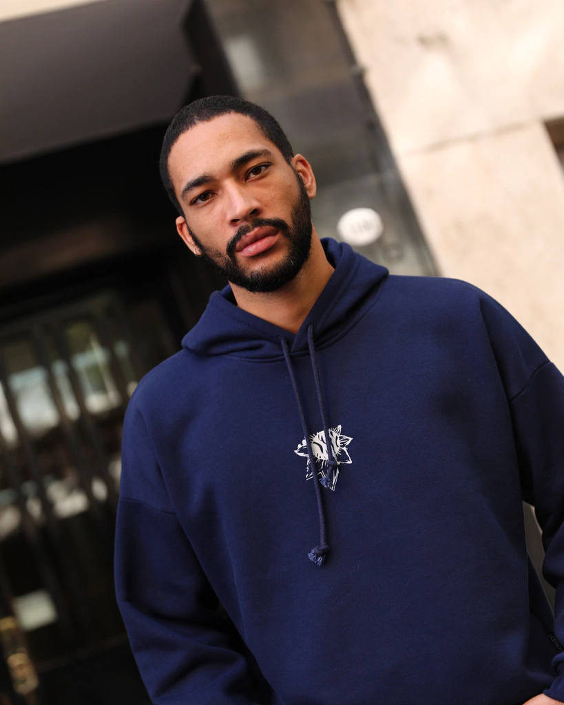Buzo boxy fit con capucha, confeccionado en friza, 100% poliester. Tiene estampa en frente y dorso.