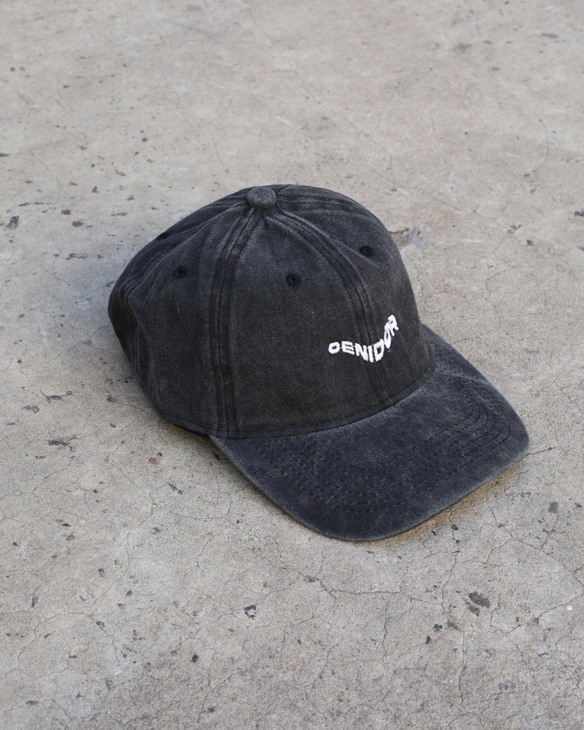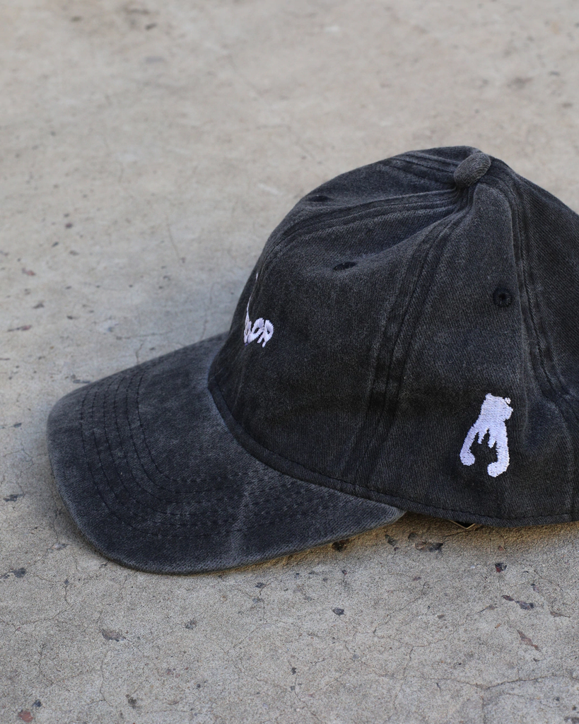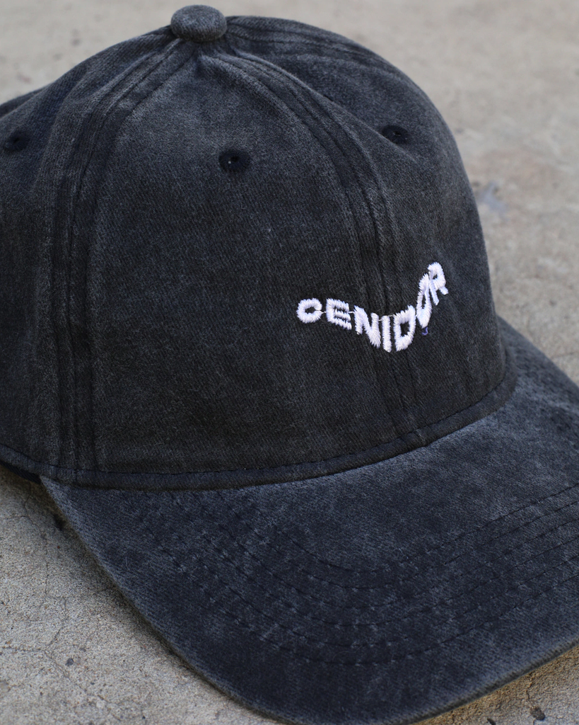 "Gorra de gabardina color negro lavado, tiene un bordado en el frente y en el costado.