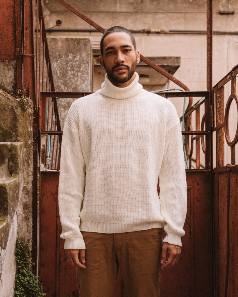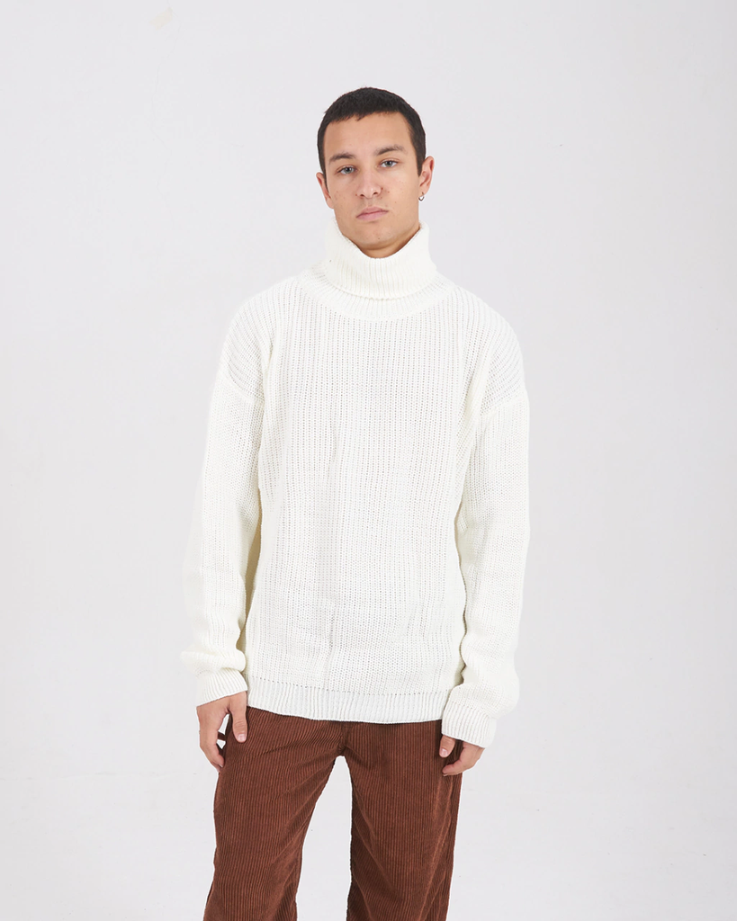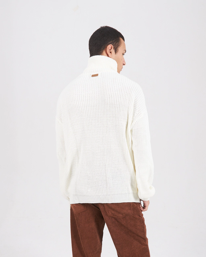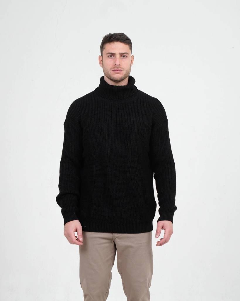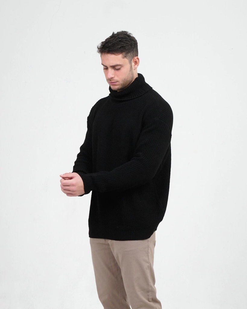 Polerón grueso confeccionado en hilado de acrílico. es un moldeo oversize con hombros caídos.