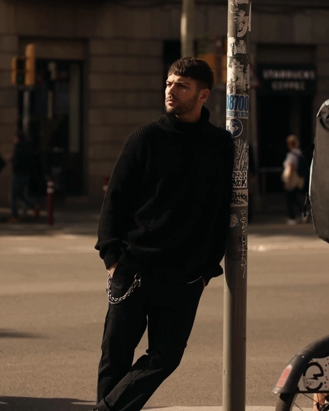 El modelo mide 1.80 m y usa talle M.