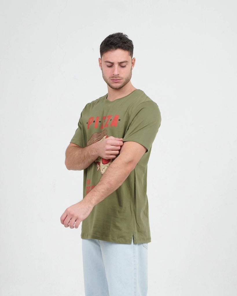 Composición 100% algodón. Su corte es recto con cuello redondo. Posee una estampa en el frente.