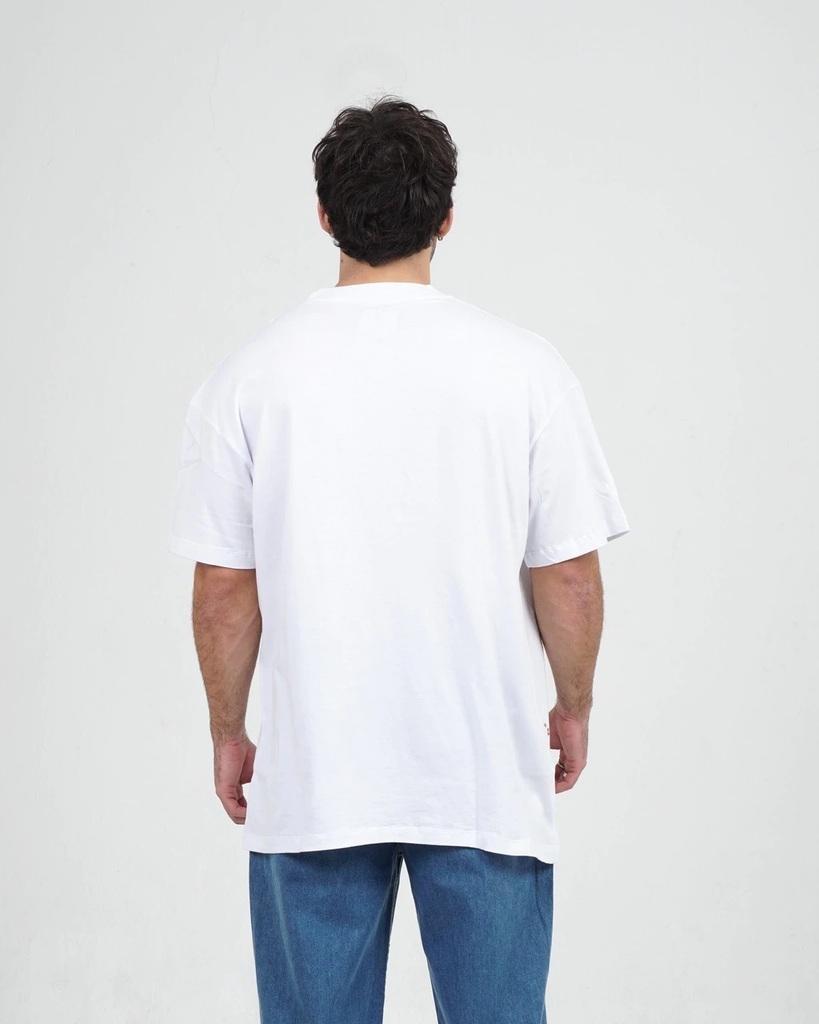 Remera de calce oversize blanca hecha con Jersey 24/1 100% algodón.