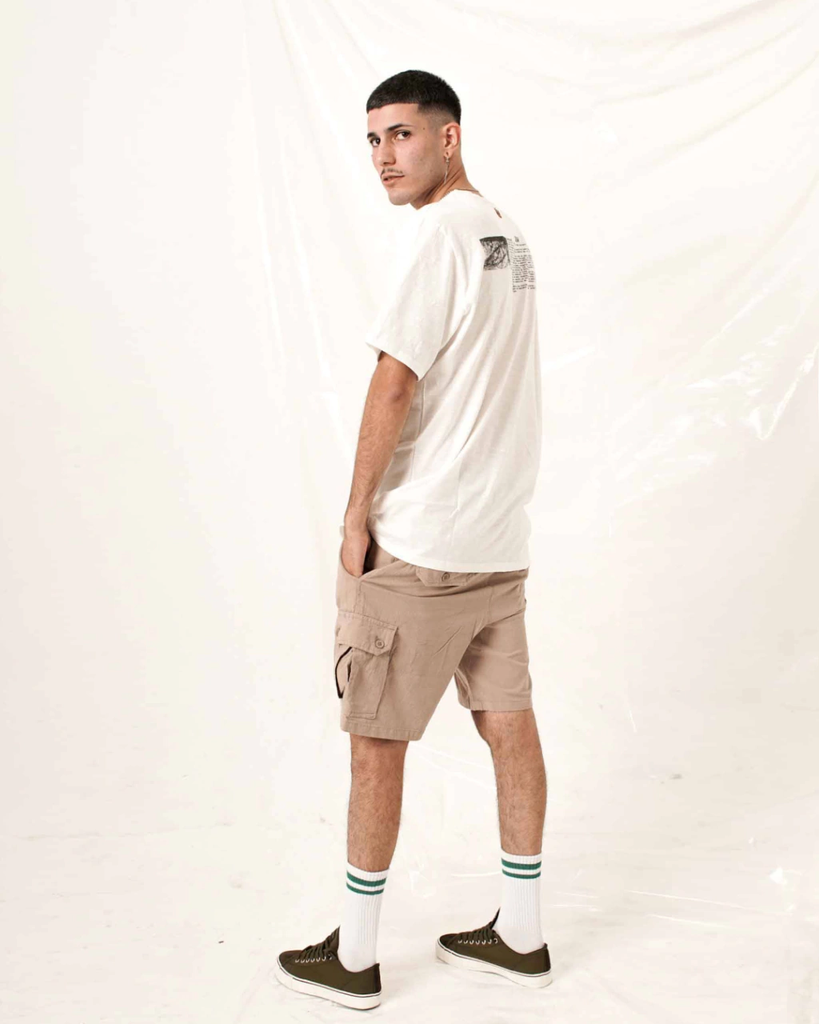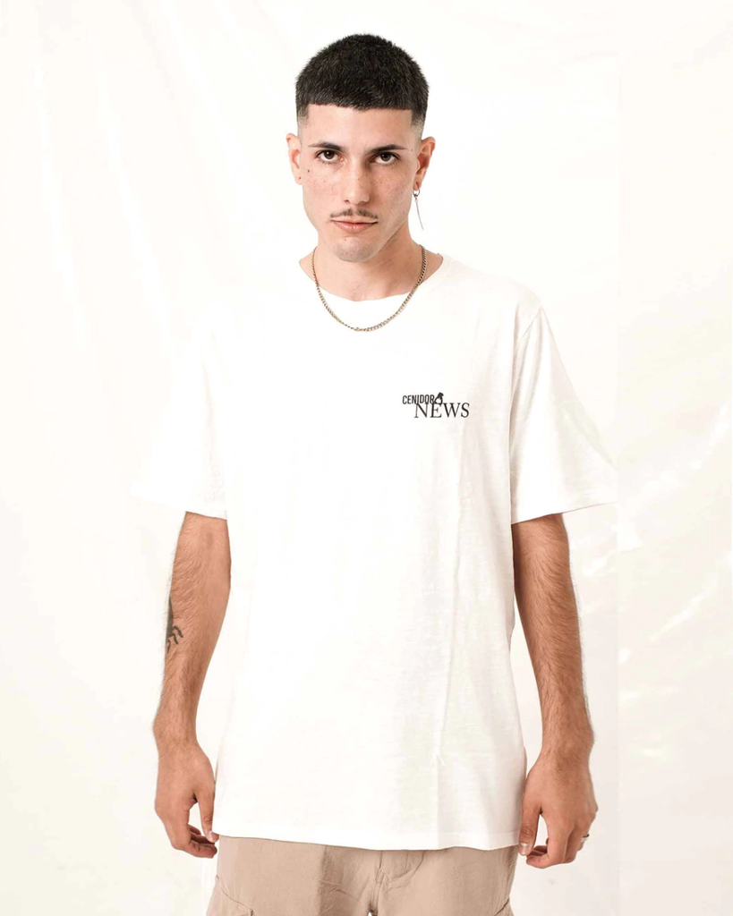 Remera de jersey flame estampada. El modelo mide 1.82 y usa talle L