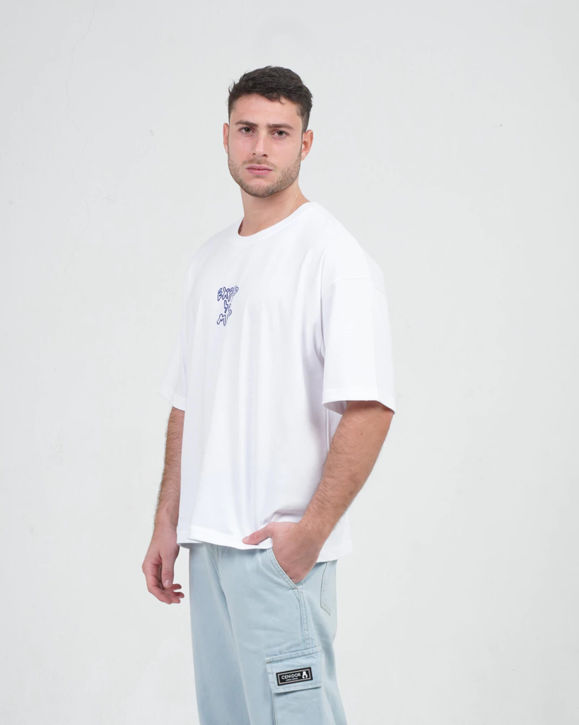 Remera de corte boxy fit hecha con tela Jersey 20/1, 100% algodón. Estamos hablando la mejor calidad de tela que existe (posta).